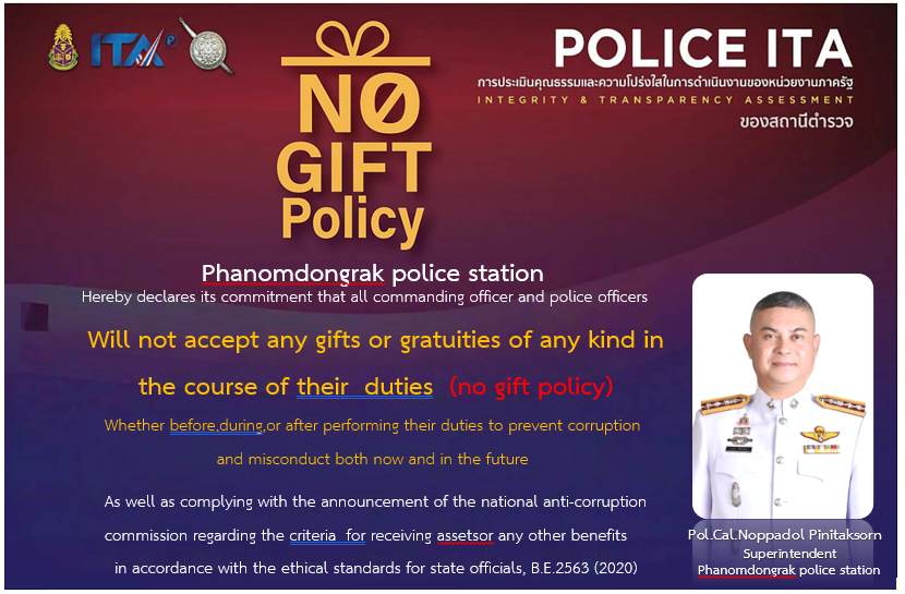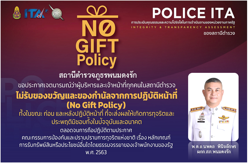 การประกาศเจตนารมณ์ ไม่รับของขวัญและของกำนัลทุกชนิดจากการปฏิบัติหน้าที่ (No Gift Policy) ของสถานีตำรว