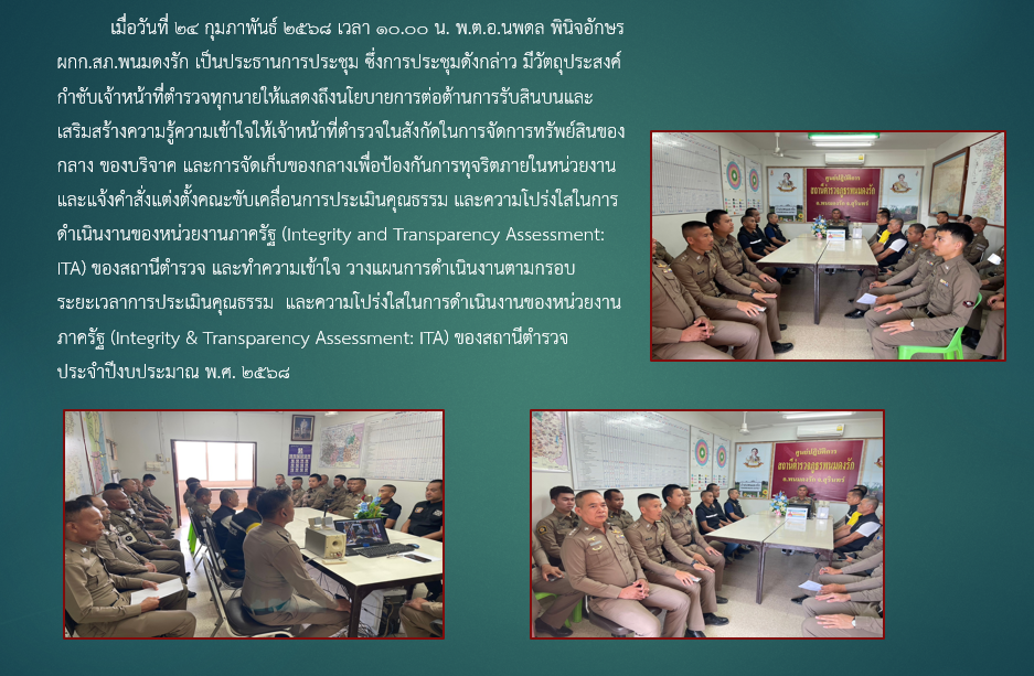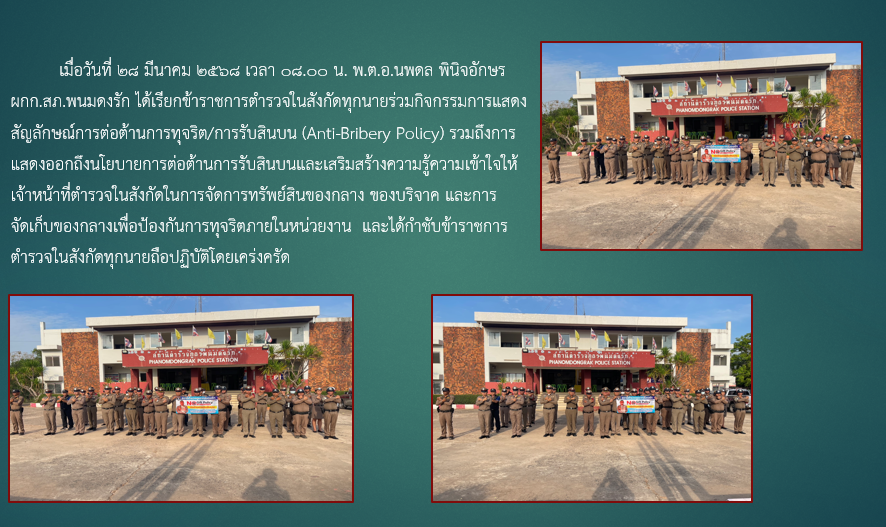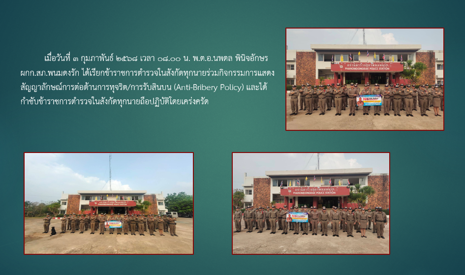 การประกาศเจตนารมณ์ ไม่รับของขวัญและของกำนัลทุกชนิดจากการปฏิบัติหน้าที่ (No Gift Policy) ของสถานีตำรว
