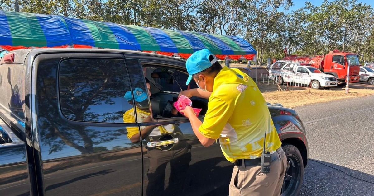 ภายใต้การอำนวยการของ พ.ต.อ.นพดล พินิจอักษร ผกก.สภ.พนมดงรัก มอบหมายให้ พ.ต.ท.วิชาญ ท่าไม้ รองผกก.ป.ฯ พ.ต.ท.วิทยา อินเที่ยง สวป.ฯ พร้อมชุดจิตอาสา ชุมชนยั่งยืน สภ.พนมดงรัก ร่วมแจกลูกอม ให้กับประชาชนที่เดินทางกลับจากภูมิลำเนา เพื่อป้องกันอุบัติเหตุที่จะเกิดขึ้น ในห้วง 7 วันอันตราย