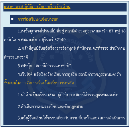แนวทางการจัดการเรื่องร้องเรียนสภ.พนมดงรัก