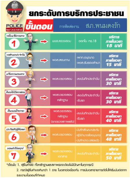 ประเภทงานให้บริการ /ขั้นตอนและมาตรฐานการให้บริการ ตามสายงานต่าง ๆ ในสถานีตำรวจภูธรพนมดงรัก