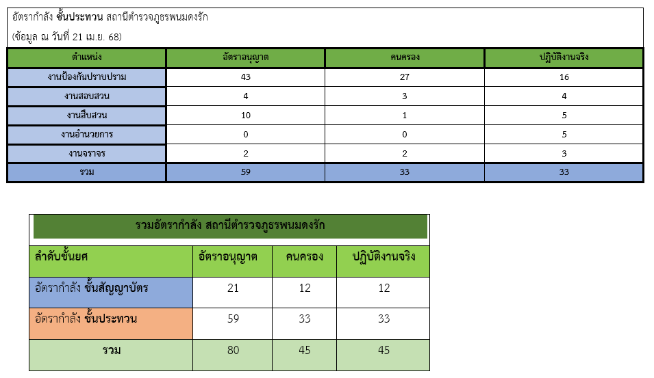 ข้อมูลอัตรากำลังสถานีตำรวจภูธรพนมดงรัก